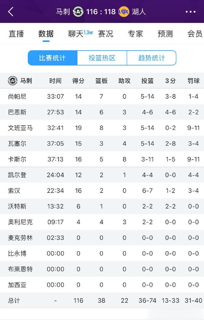 湖人118-116艰难战胜马刺, 取得五连胜!